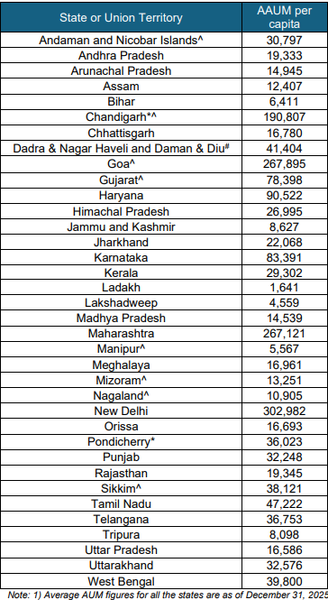 - NCT of Delhi accounted for close to 14% of total AAUM, recording a whopping 40% growth in 2025.