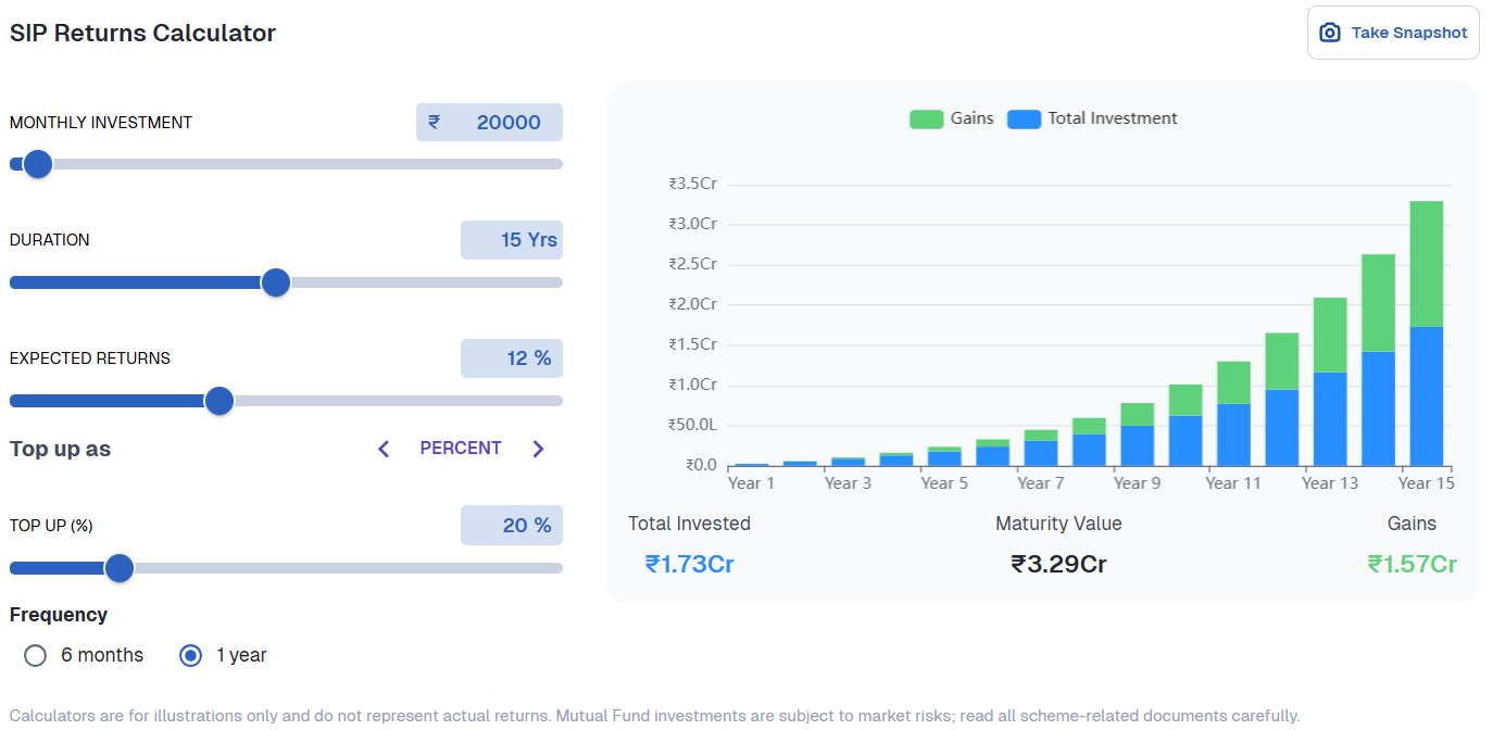 - A 20% annual increase in SIP can take it to approximately ₹3.29 crore